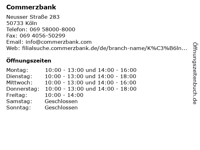 Zu jeder filiale findest du weiterführende informationen wie adresse telefonnummer und öffnungszeiten. Für deutsche bank filiale in köln sind noch keine bewertungen abgegeben worden. The bic swift code provides information. öffnungszeiten adressen prospekte angebote telefonnummer finde alle infos zur geschäftsstelle in 50733 köln nippes.