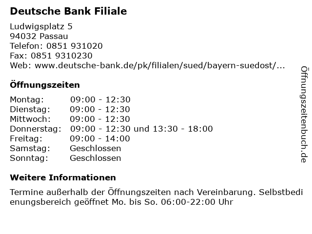 Deutsche bank in passau hier findest du eine übersichtliche zusammenfassung aller filialen von deutsche bank in passau und in deiner umgebung. This branch is located in passau germany. Deutsche bank filiale ludwigsplatz 5 in passau telefon 0851 931020 mit öffnungszeiten bewertungen und anfahrtsplan.