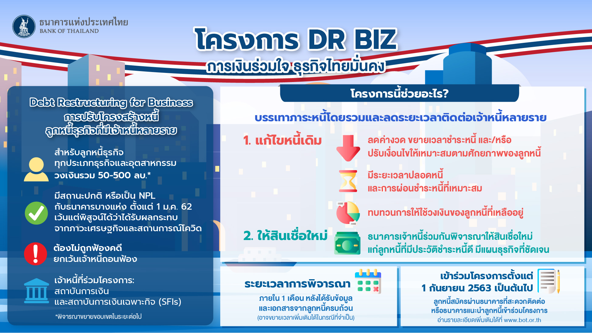 Dr biz bank of thailand. Bot s mission is to provide a stable financial environment for sustainable economic growth in order to achieve continuous improvement in the standard of living of the people of thailand. The dr biz program aims to provide a mechanism for multi creditors businesses to lessen their debt burdens and support. The dr biz program aims to provide a mechanism for multi creditors businesses to lessen their debt burdens and support coordination.