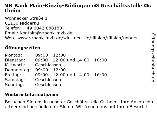 Vr bank ostheim. Vr bank eg aschaffenburger str. Ihre ansprechpartner sind persönlich für sie da. In unserer vr bank main kinzig büdingen eg geschäftsstelle ostheim freuen wir uns über ihren besuch. Telefon 09771 9101 0 fax 09771 9101 490 e mail schreiben sie uns.